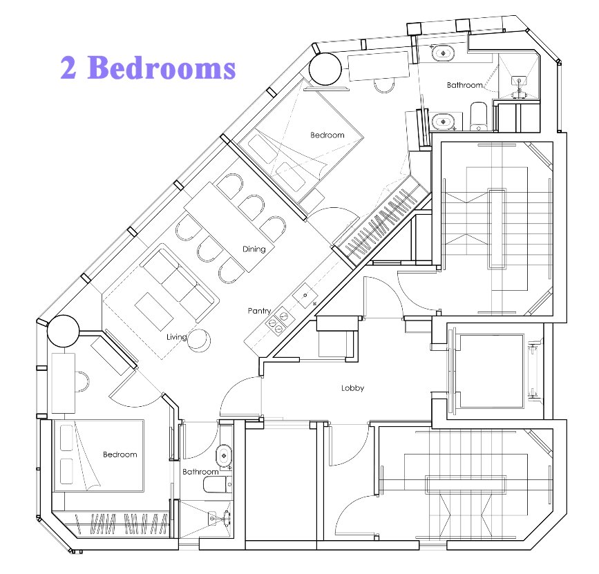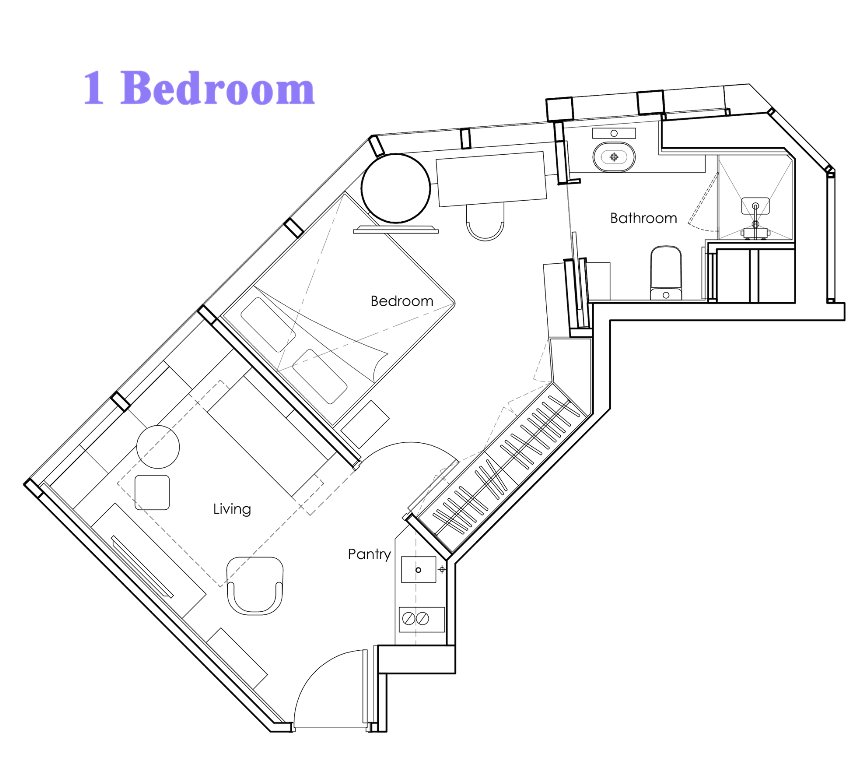 | ルームタイプ (1m2 = 10.76sq.ft.) |
