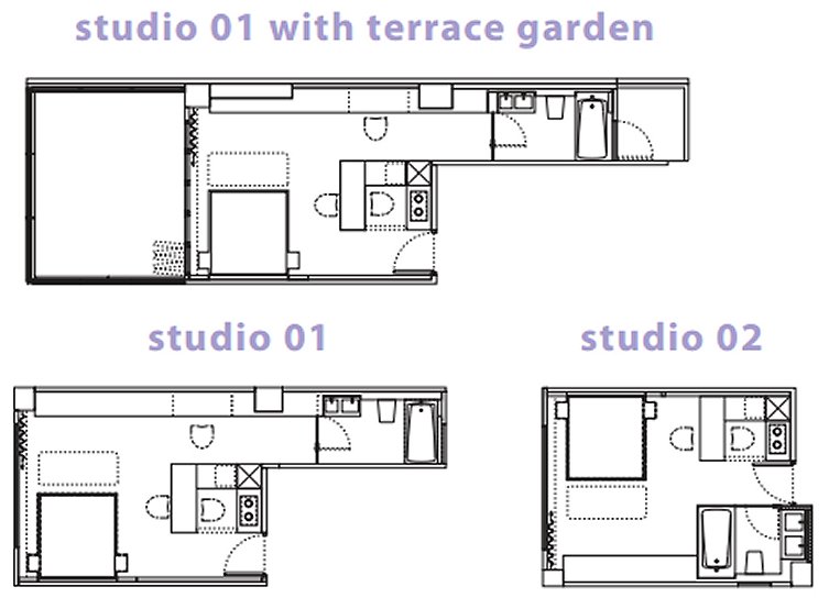 | ルームタイプ (1m2 = 10.76sq.ft.) |
